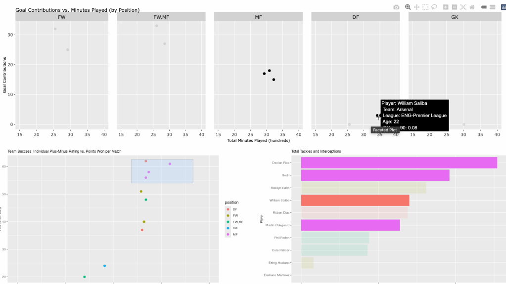 The Analysis: The analysis was conducted in R, utilizing the Shiny and Plotly packages for readable graphs. The study focused on three main areas: Goal contributions, defensive contributions, and overall plus-minus statistics.